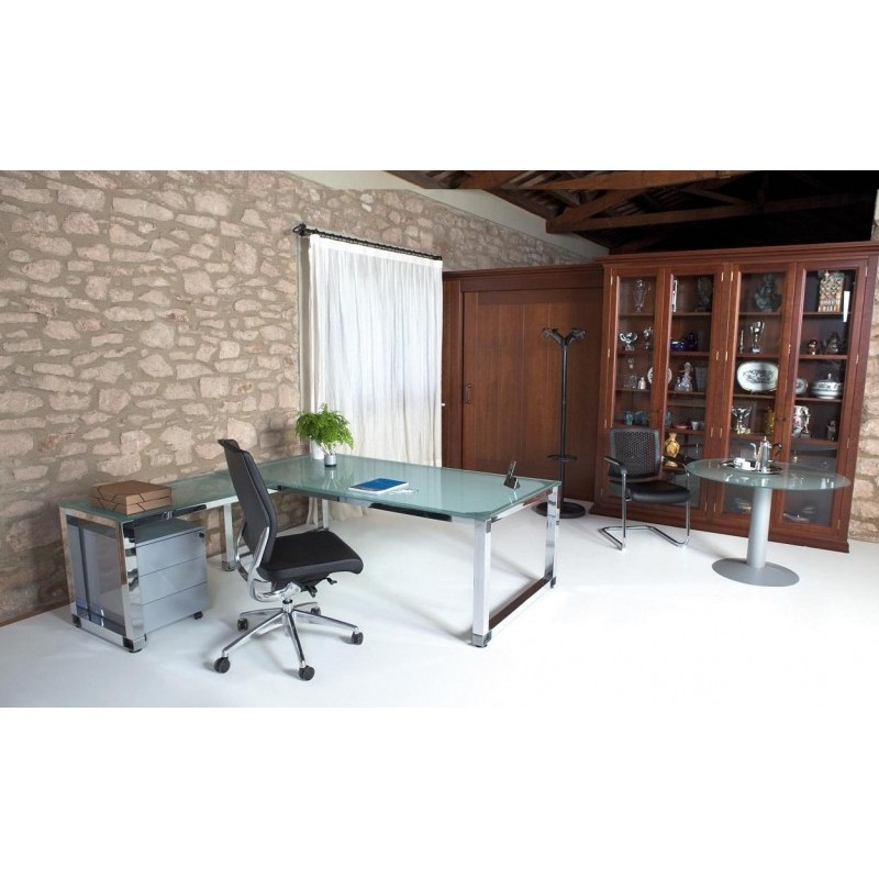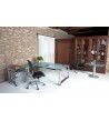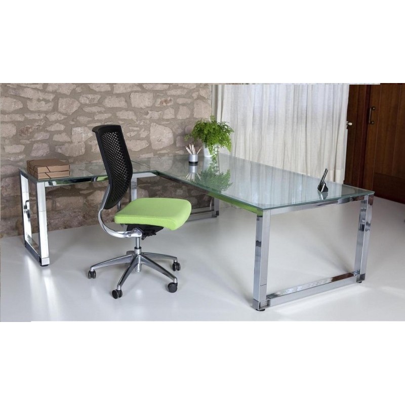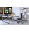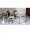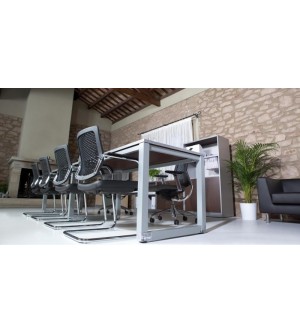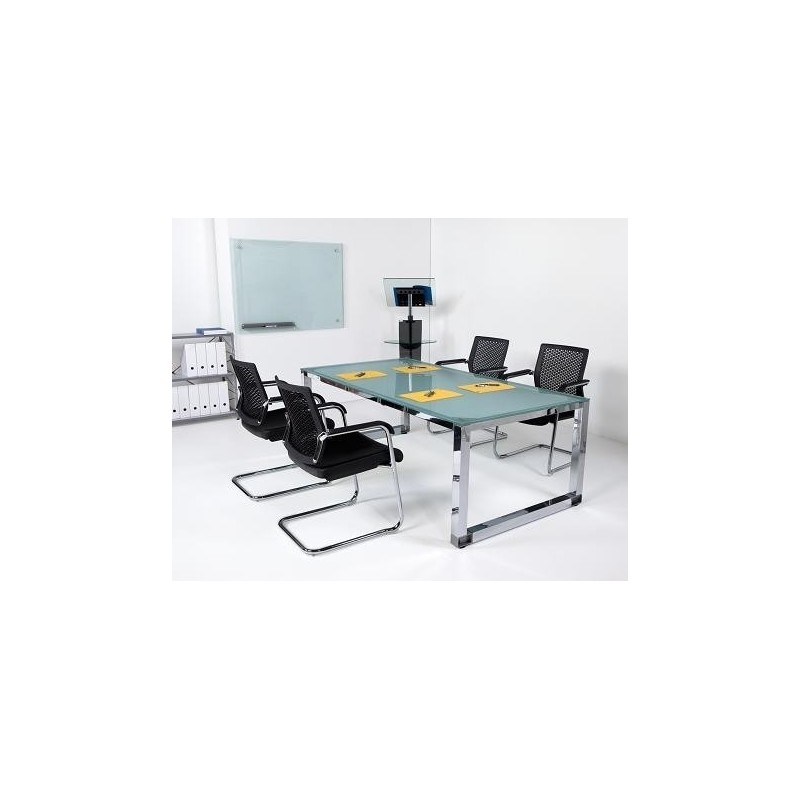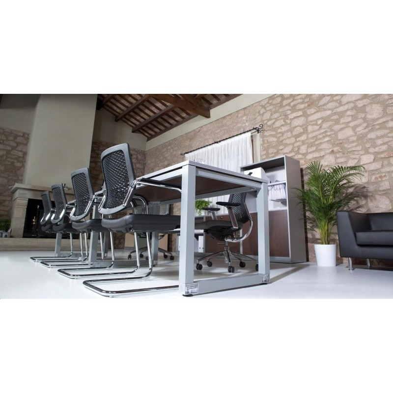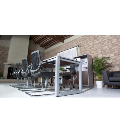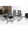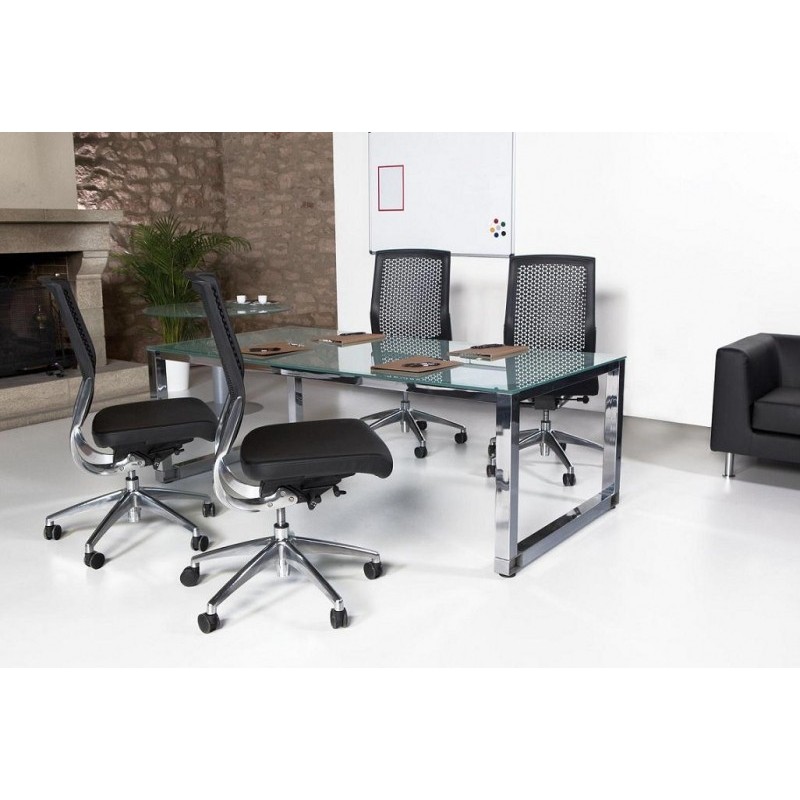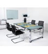 Detalle de la pata pintada en aluminio en la mesas de reuniones cristal y cromada.