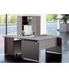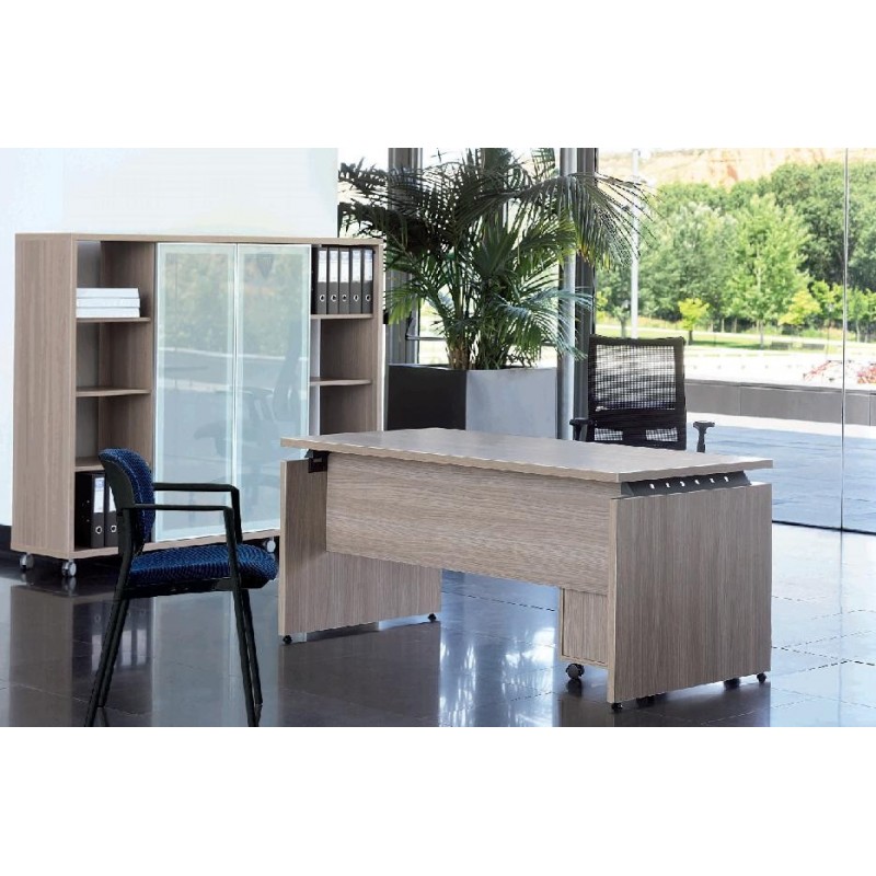 Aquí tienes la última incorporación de mobiliario de oficina en nuestra web, como puedes observar en esta línea vas a encontrar detalles poco comunes, como por ejemplo el embellecedor incrustado entre el tablero de la sobremesana y la pata, asimismo los niveladores de las patas dejan margen suficiente para cablear si desestabilizar la mesa, otro detalle poco común es en el detalle del ala auxiliar, puesto que no cierra completamente el conjunto permitiendo por un lado cablear más fácilmente y creando un aspecto visual más ligero y minimalista.